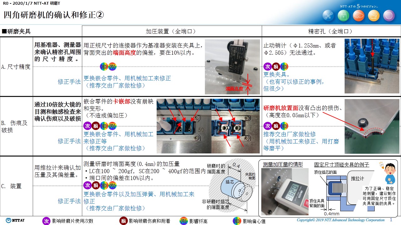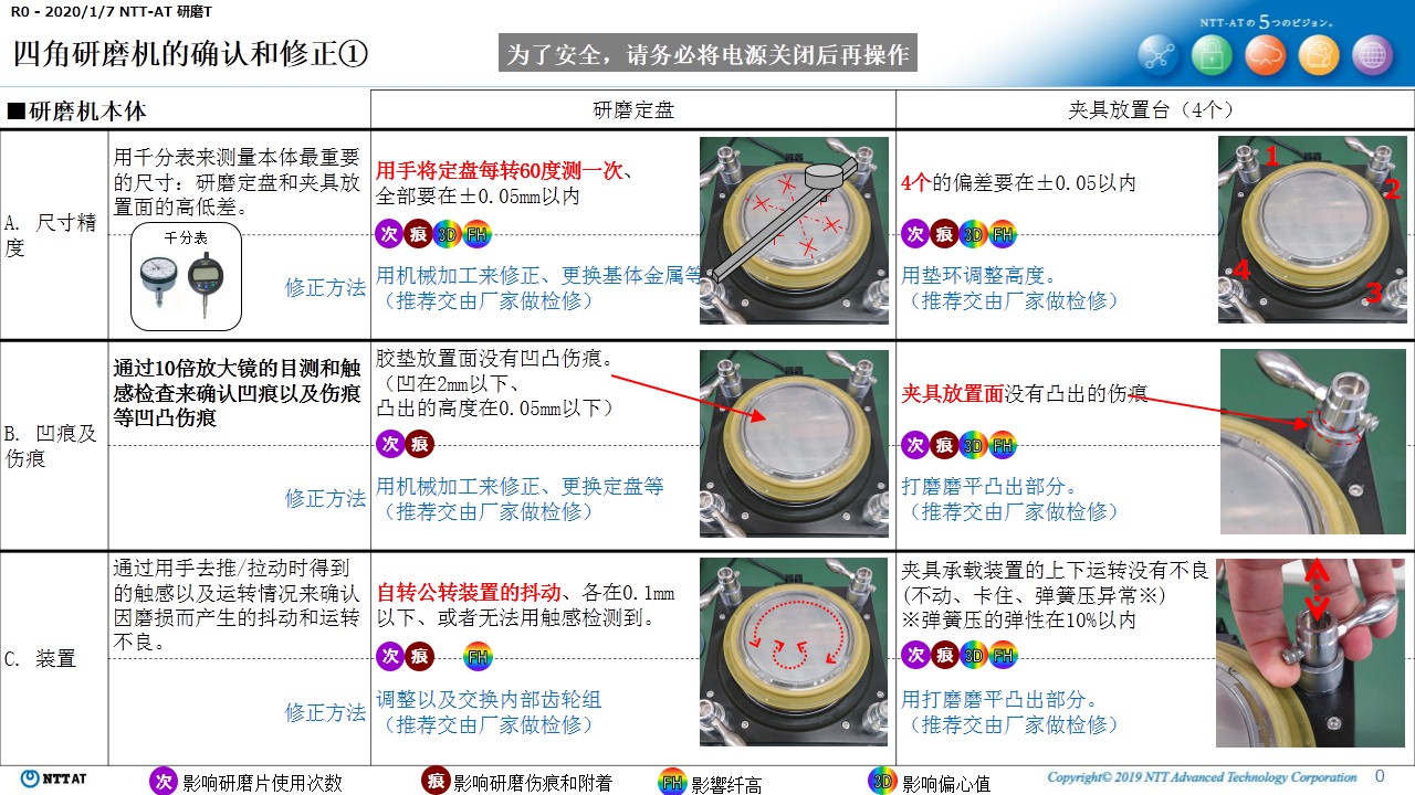 四角研磨機的確認與修正